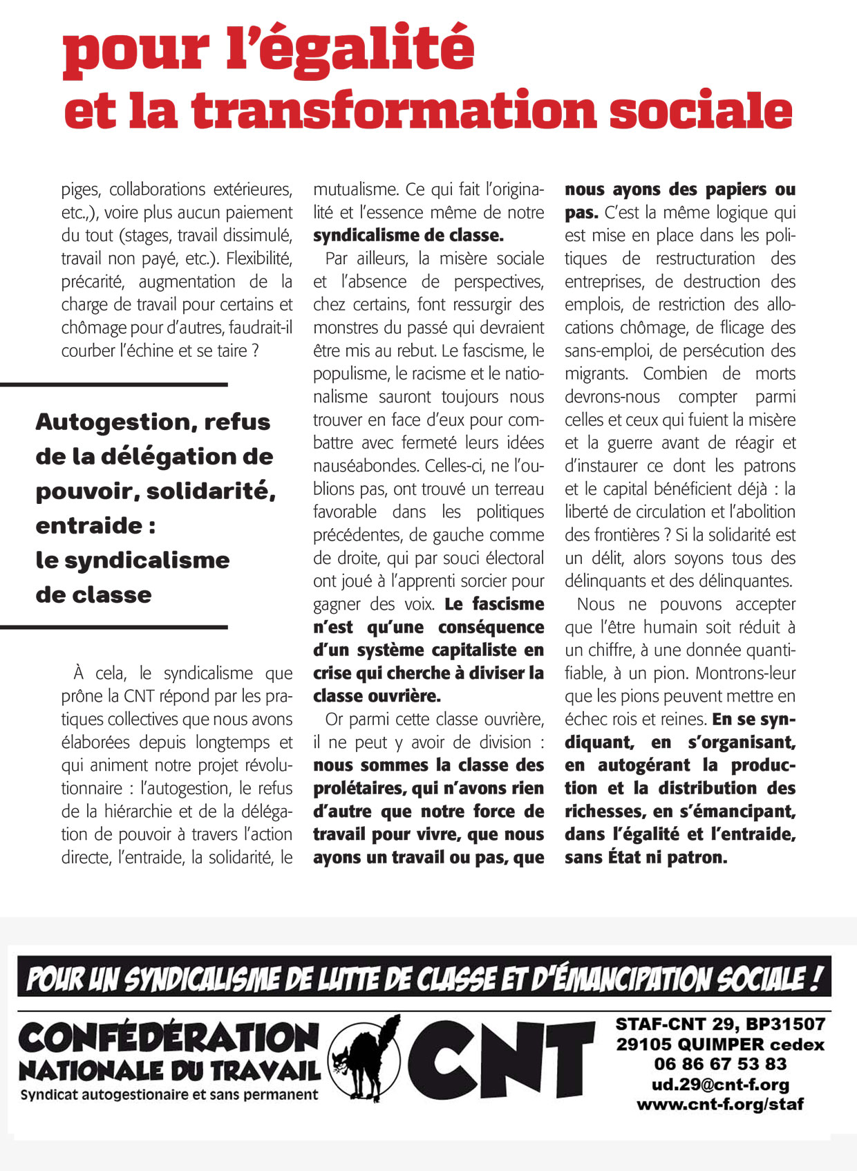 En conséquence la CNT appelle, ce 1er mai, à rejoindre la manifestation syndicale à 11h devant la gare de Quimper.