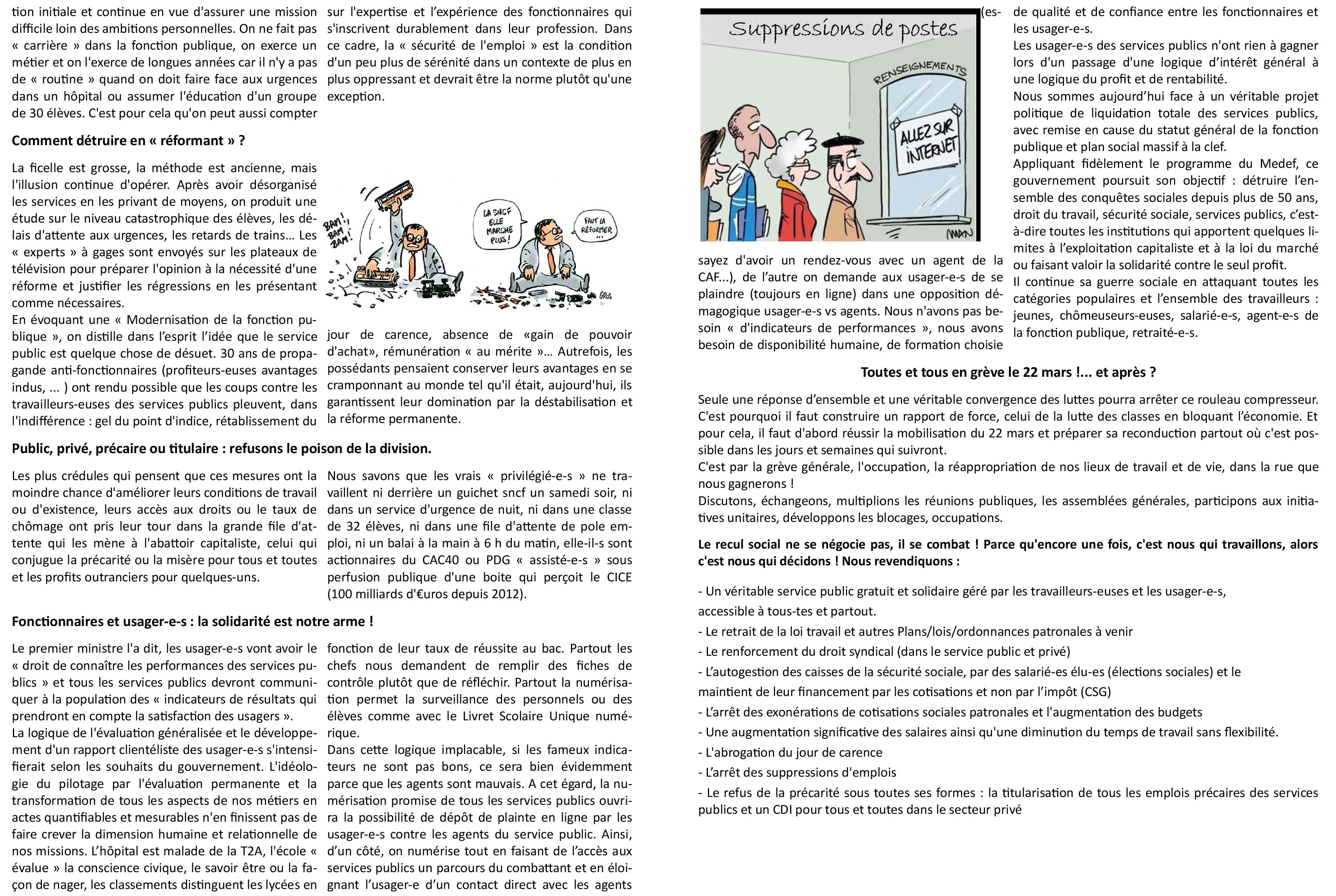 Pour les services publics, contre la précarité, le management et la misère : organisons la riposte !